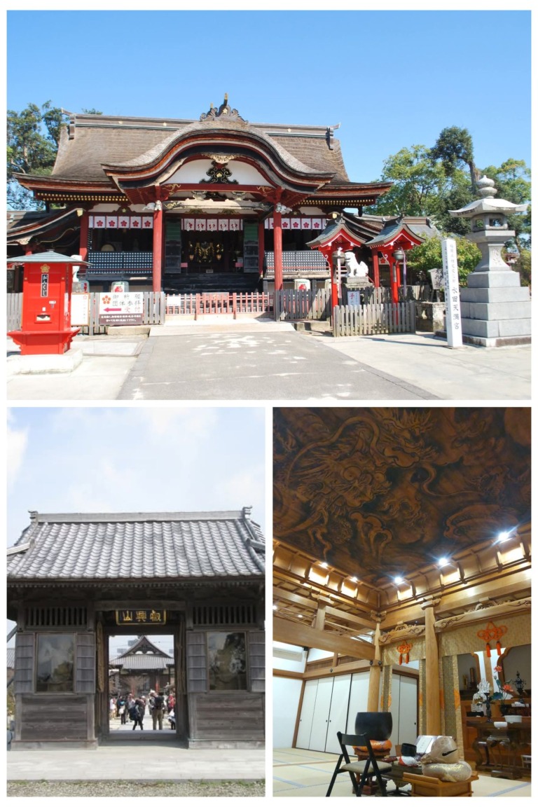 ①寛元寺(龍の天井絵図が見事)、②光明寺(筑後市最古の寺)、③水田天満宮(大宰府と並ぶ九州二大天満宮)の三か所を、ガイドとともにジャンボタクシーで巡ります。